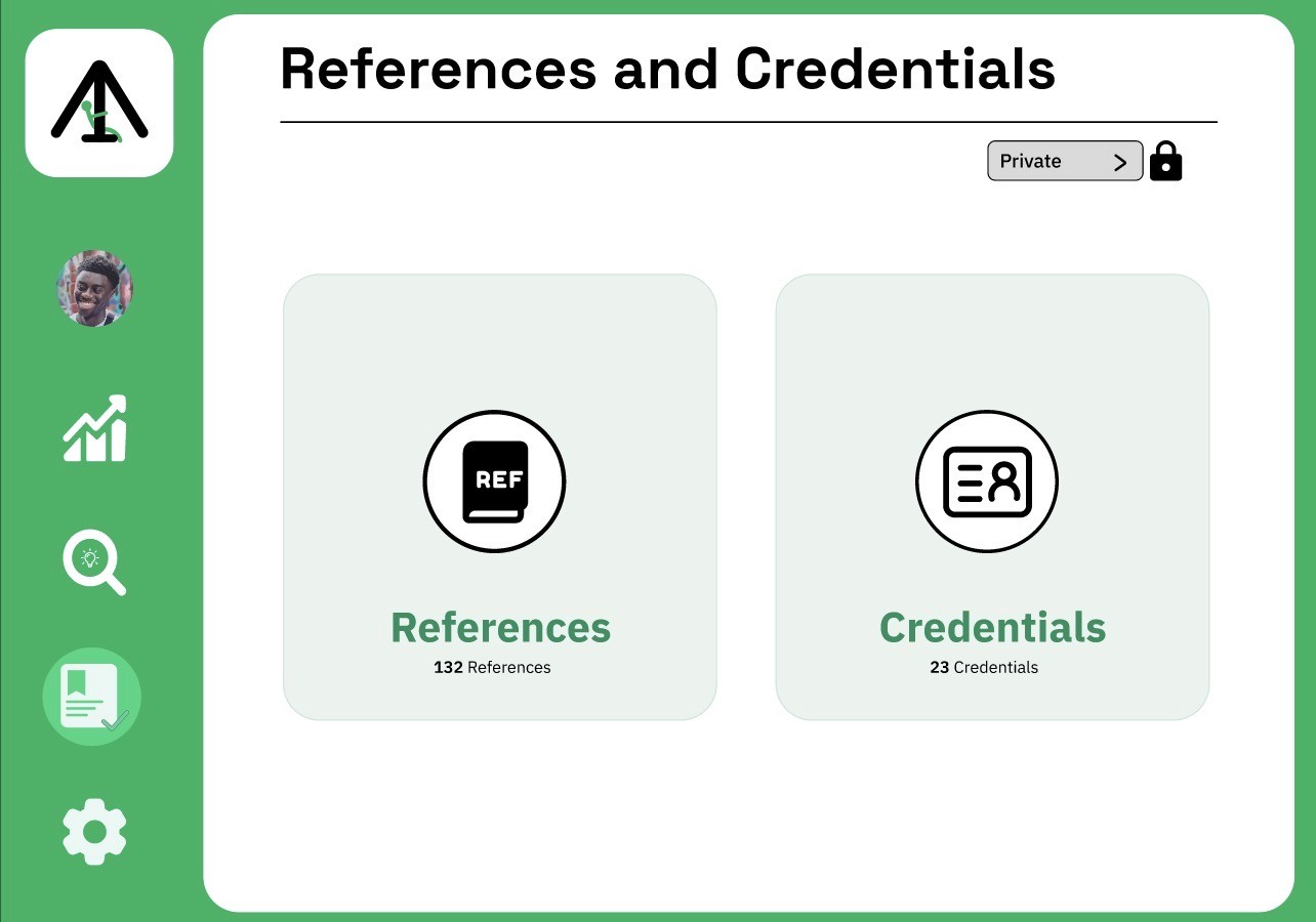 Insights & Analytics, References & Verifications, and Settings, clearly divide professional